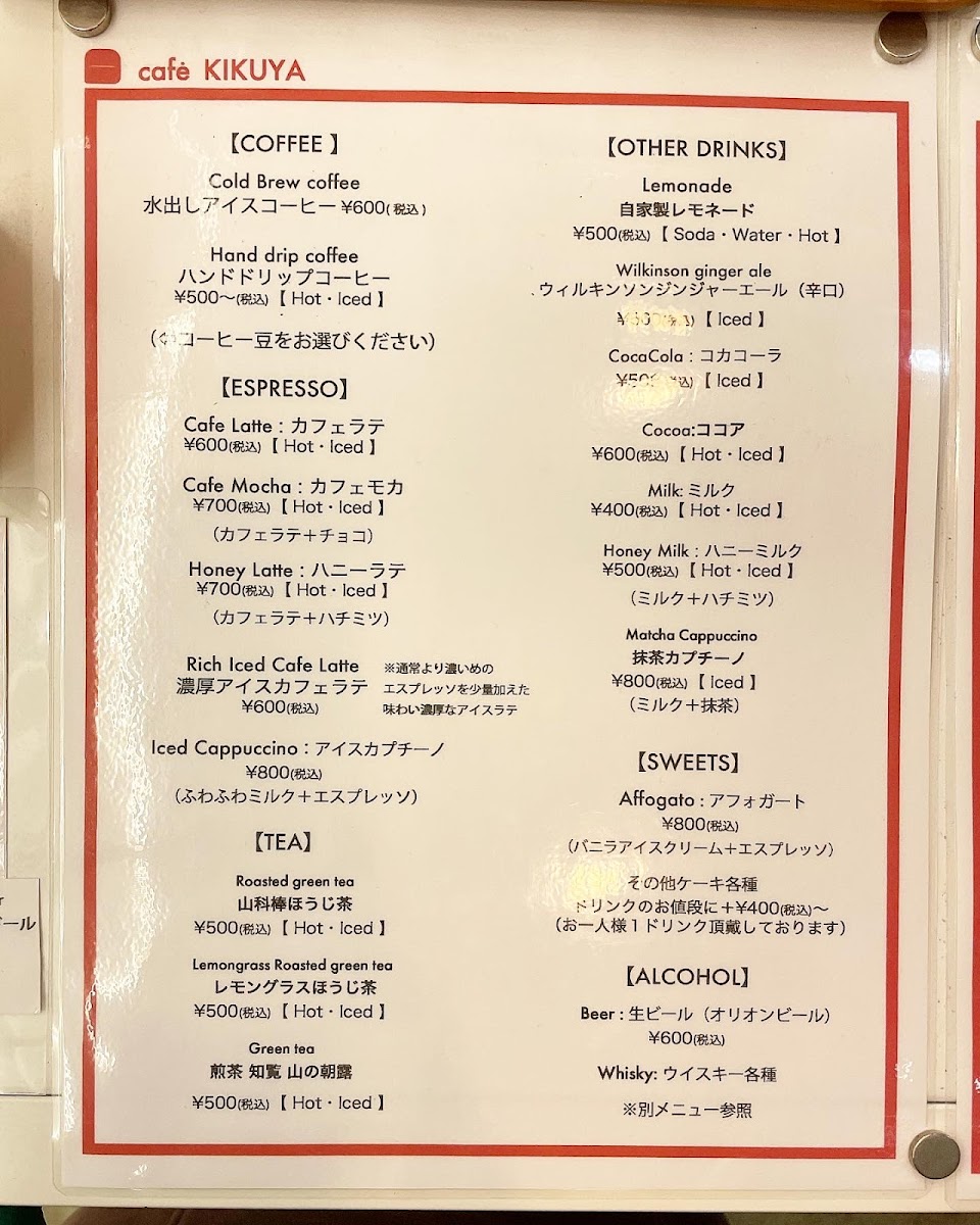 Don’t miss out on their unique craft beer selection either. At JP¥800 each, indulge in refreshing options like Pilsner, Stout, and Pale Ale that celebrate local brewing craftsmanship. If you’re seeking a lighter fare, the 塩ジンジャーエール (salt ginger ale) offers a refreshing, earthy twist to complement your coffee or beer. There’s a little something for everyone at KIKUYA!